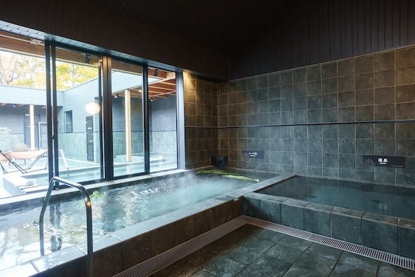 「大浴場」は自然に囲まれた開放的な浴室で、4種の浴槽とサウナを楽しめる。