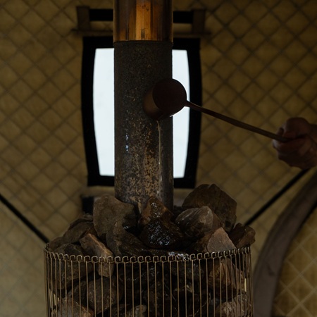 2つ目は「伝泊 The Beachfront MIJORA」の目の前に広がる海辺にテントサウナを設置。海風や潮の香りを感じながら自然と向き合う時間を過ごせる。島のサウナ事業者がマンツーマンでサポートし、一人ひとりに合わせて心と身体を調える体験を演出する。