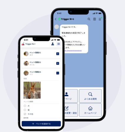 アズオブは、ペットの飼い主を主な対象とした、LINEを用いた見守り・保護依頼アプリケーション「Trigger(トリガー) N+1」のサービスを開始した。