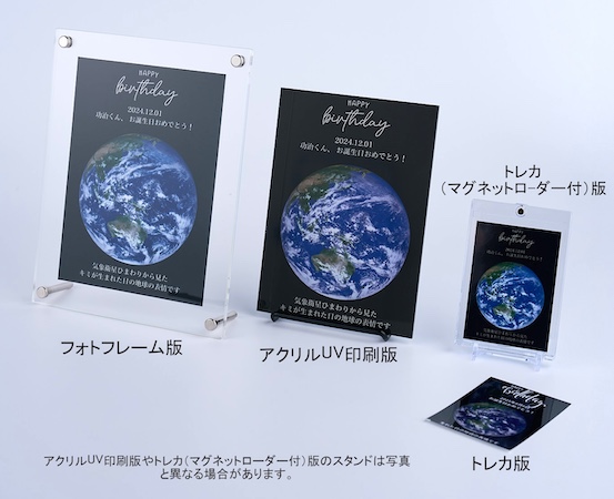 「宙(そら)からの贈りもの アニバーサリー・フォト」は、さまざまな人生のシーンで選ばれている。出産祝いとして、生まれた日の地球を家族の記録に。結婚祝い・結婚記念日に、ふたりの始まりの日を空とともに。誕生日祝いとして、その年の「世界の様子」を振り返る一枚に。卒業や入学、進学、就職など、新しい一歩を踏み出す日の記念に。引っ越しや転居など、環境が変わる節目の思い出として。家族や恩師、パートナーへの感謝を伝える贈りものとして。これから迎える卒業・入学シーズンには、成長や旅立ちを見守る記念品としての利用も広がっているとのことだ。