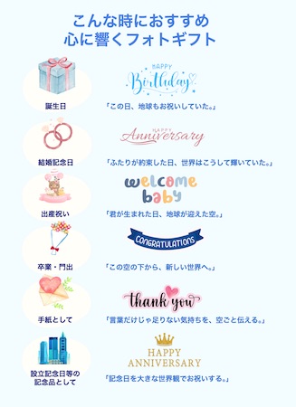期間限定キャンペーンを実施中の「宙(そら)からの贈りもの アニバーサリー・フォト」をチェックしてみては。