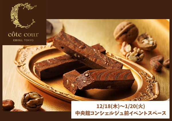中日本エクシス 滋賀支店は、E1 名神高速道路(名神)EXPASA(エクスパーサ)多賀(下り)の中央館コンシェルジュ前イベントスペースにて、12月18日(木)~2026年1月20日(火)の期間、ブラウニー専門店「コートクール」の商品を販売する。