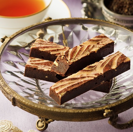 「アールグレイブラウニー」5枚入り・1,458円(税込)は、自慢のブラウニー生地に紅茶フレーバーをプラスして焼き上げた一品。一口食べると芳醇なカカオの風味と、アールグレイの華やかな香りが口いっぱいに広がる。