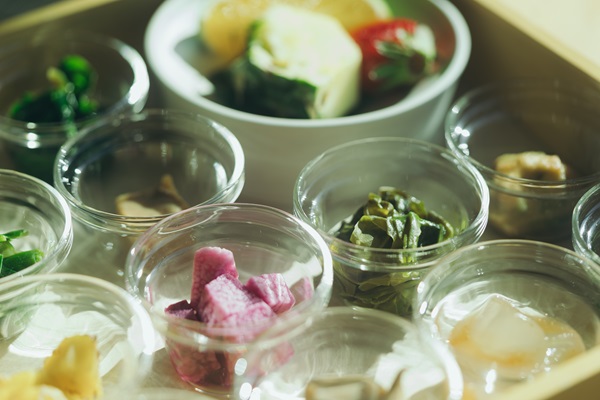このメニューは、地域食材と郷土料理の知恵を生かした「土地を食べる体験」が特徴。市場に出回らない島野菜や果物を、顔なじみの近隣生産者から直接仕入れ、塩と麹を軸にした素材の味を引き立てる優しい味付けで仕上げる。