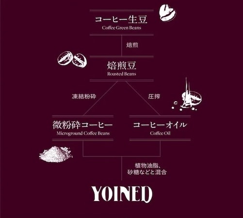 「YOINED」は、食べるスタイルのコーヒー。「コーヒー豆の香りや味をすべて味わってみたい」という研究者の興味から着想を得て、20年以上の時を経て2023年に誕生した。名称は、コーヒーを飲んだ後にじっくりと感じる「余韻」に由来する。