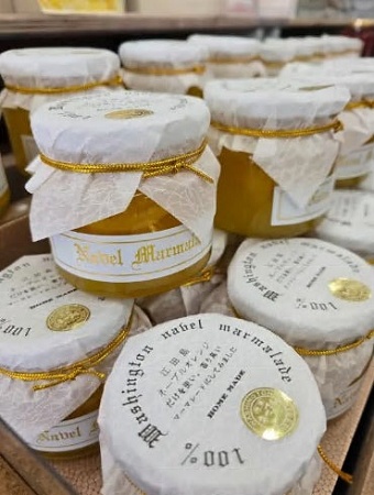 お土産に人気のネーブルマーマレードやジャムなどの加工品、手土産のお菓子類も販売している。