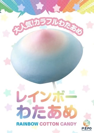 飲食ブースでは、「P・SPO」のイベント出店の大定番だという「レインボーわたあめ」が登場する。価格は、スティック/カップとも各500円だ。全自動で作られるレインボーのわたあめは、SNS映えすること間違いなしだ。また、飲食ブースでは、「恐竜ミュージアム」来場の記念として家族で楽しめるスイーツも提供していく。