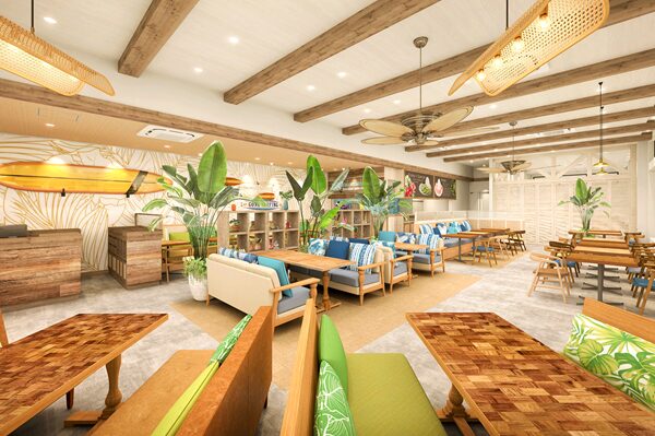 佐賀県初出店となる新店舗は、鳥栖プレミアム・アウトレット内にオープン。「Eggs ’n Things 鳥栖プレミアム・アウトレット店」は、ゆったりとした時が流れる、居心地の良いハワイアンリビングのような雰囲気だ。店内ではホイップクリームたっぷりのパンケーキや、濃厚なオランデーズソースで仕上げたエッグベネディクト「エグスンベネディクト」など、Eggs ’n Thingsならではの定番朝食メニューが味わえる。他にも、ガーリックシュリンプやアヒポケなど本場ハワイの味わいを楽しめるロコフードが豊富にラインナップしている。