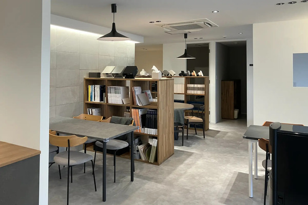 合計8つの打ち合わせスペースには、キッチン天板・床材・タイルなどの実物サンプルをずらりと配置。キッズスペースとドリンクも用意しており、じっくり仕様選定が可能だ。少人数の打ち合わせから詳細な仕様決めまで、快適に行える空間設計となっている。