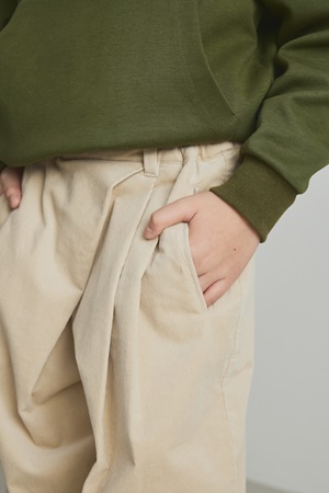 さらに、日常使いの動きやすさを支えるディテールとして、予備ボタンの追加、補強ステッチ、やわらかなネックライン、調整可能なウエストゴムなど、オリジナルの工夫も随所に採用している。