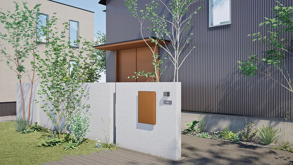 ボックス本体の設置後に、外扉を最後に簡単に取り付けられる構造なので、宅配ボックスやポストの開口部・操作部を外扉で覆うことで、外観のノイズを排除し、洗練されたファサードを実現できる。