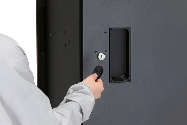 施錠は、宅配物を投入後に、宅配業者が内扉のつまみを「Lock」に回すと完了。荷物を取り出し、取出扉を閉めると、自動的に次回の荷物を受け取れる状態になる。