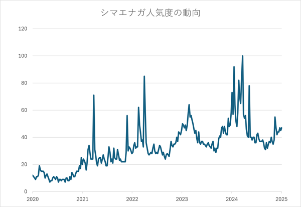過去5年間のシマエナガの検索トレンド(Googleトレンド調べ)