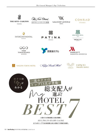 総支配人が選んだホテルの魅力ベスト7が、各ホテル2ページのインタビュー記事として掲載された。憧れホテルの「今」がわかるスペシャル企画だ。