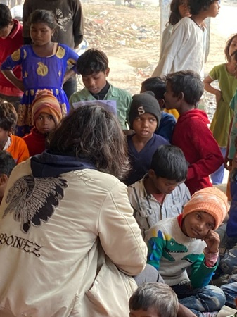 結び手は12月26日(金)、ビハール州ガヤ県の村Sundariya Nagarを訪問し、村人および子どもたちと対話を行った。同村の住環境は脆弱で、最低限の生活資源へのアクセスも限られている。