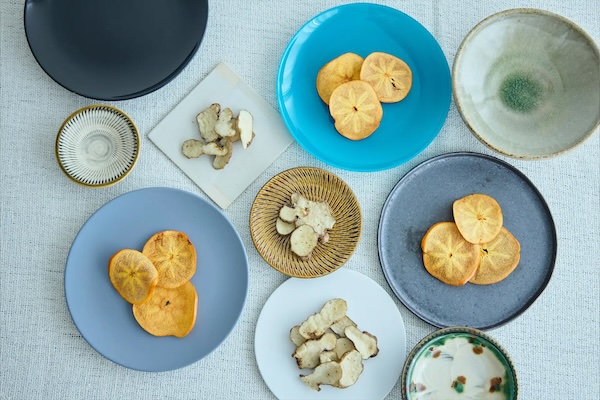 原料には、五條市西吉野の富有柿や宇陀市の紫菊芋など、奈良で育まれた農産物を使用。生産者から直接仕入れた青果物を、宇陀市の自社工場で下処理から仕上げまで一貫して製造しており、「奈良の素材を、奈良の地で仕上げる」という、地域の素材と向き合う菓子づくりから生まれた、奈良のテロワールを味わう新しいお菓子となっている。