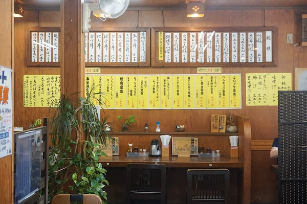 13時を過ぎるころ、「午後の肴」という時間がそっと始まる。瓶ビールを頼む声とともに、マグロの造り、ししゃも、ホタテのバター焼き……。