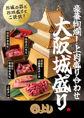 同店でも屈指の上肉がお城の器とお皿盛りから提供される「大阪城盛り」、大容量ボリュームでお得感抜群の「まるよし盛り」など、独自の安定したルートがあるからこそ可能な価格、培ってきた経験により最高の味とコスパを実現している。