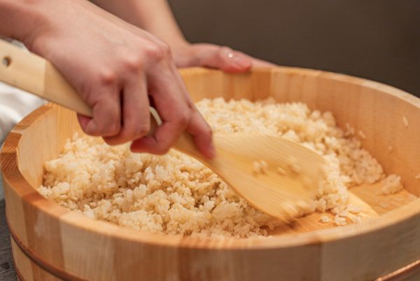 シャリは、酢・温度・水分量を調整し、鮨に最適となるよう仕込んでいる。