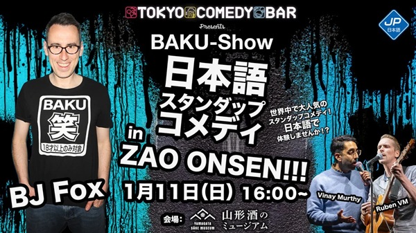 「Après Ski Comedy Show in Zao Onsen」では、英語公演および日本語公演を開催。海外からの観光客、日本人観光客、地元住民まで、言語や国籍を問わず楽しめる構成となっている。出演者は、TOKYO COMEDY BARを拠点に活動する実力派コメディアン。Vinay Murthy氏、BJ Foxy氏、Ruben VM氏、JJ Wakat氏が登場する。
