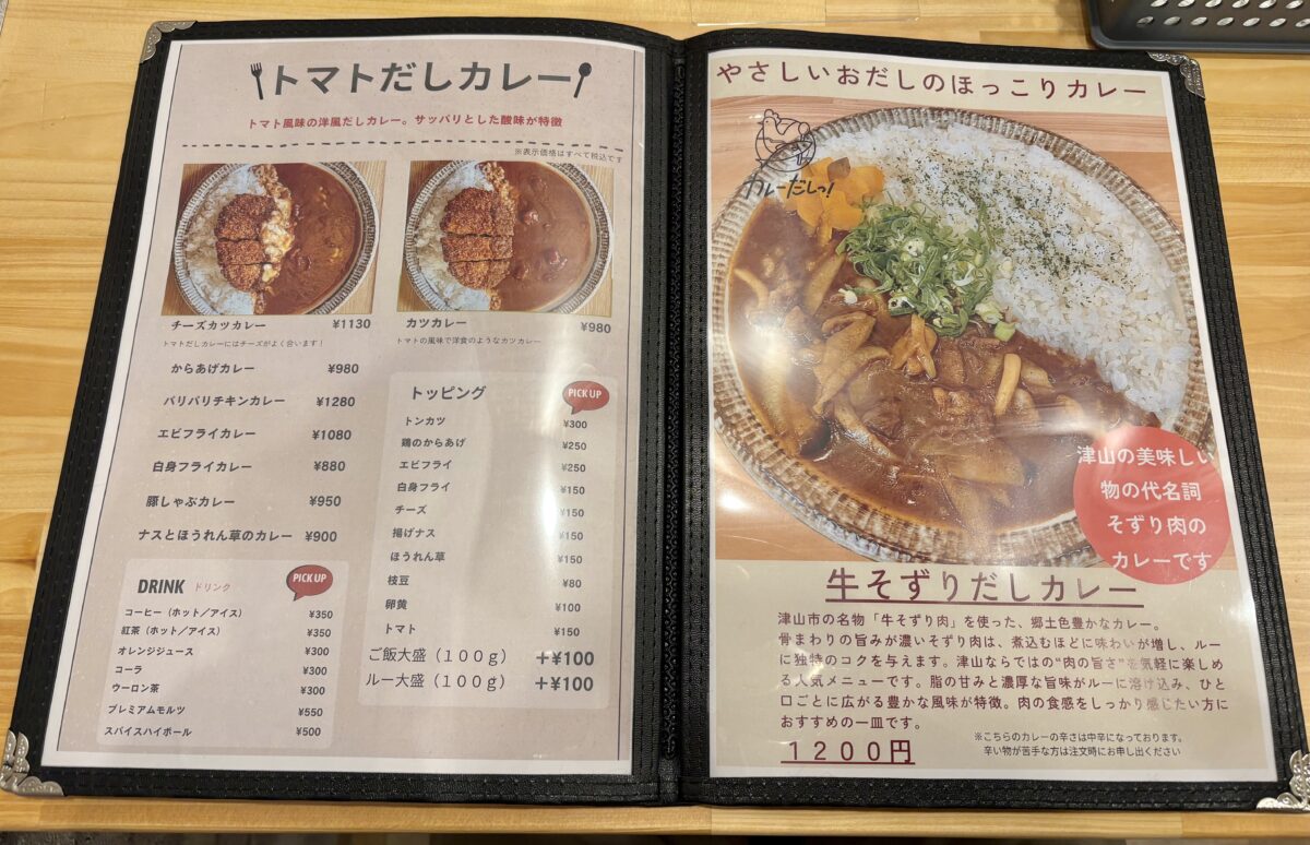 津山店オリジナルの「牛そずりだしカレー」もありますが・・・本日完売(クヤシイ!!)