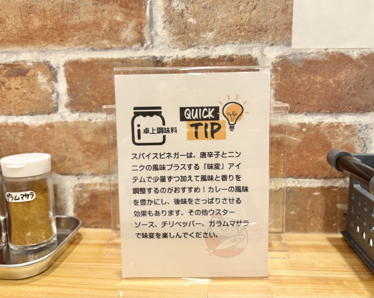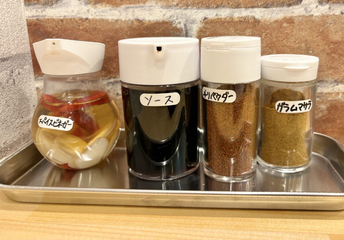 味変を楽しみたいときは卓上スパイスもたっぷりです。