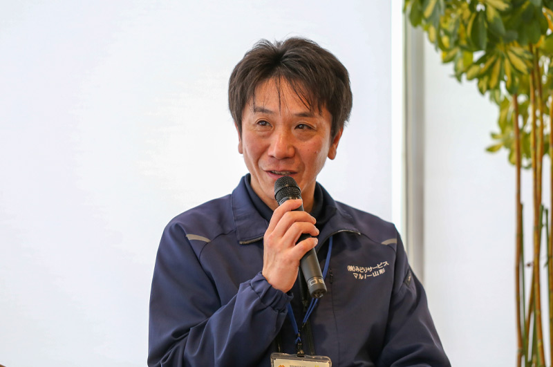 そして、味の決め手となる「とびうおのつゆ」を手掛けられた、株式会社みどりサービス マルノー山形より、代表取締役社長・吉村 俊一(よしむら しゅんいち)さんと、食品部 開発営業課 課長・岩崎 正幸(いわさき まさゆき)さんのお2人。