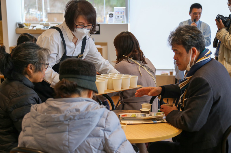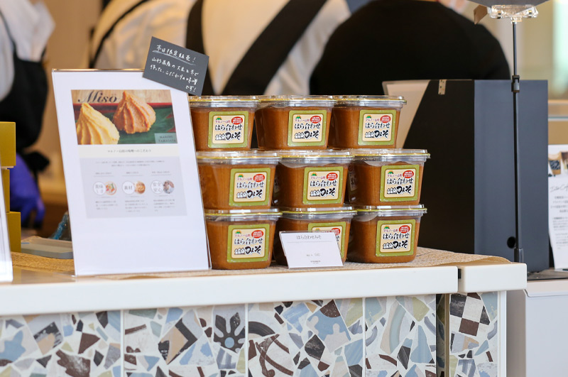 おこわに加え、ゲストのマルノー山形さんよりご提供いただいた「はら合わせみそ」のお味噌汁もセットでご用意。トークイベントのお客様だけでなく、店内にいらっしゃったすべてのお客様に、自慢の味を味わっていただくことができました。