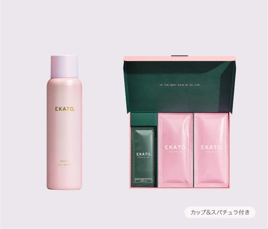 現在開催中の「EKATO POP UP SHOP」では、圧倒的な炭酸ガス(※2)の持続時間が特長の肌を整える「プレシャスジェルパック」や、1分間の泡パックで透明感のあるツヤ肌へ導く炭酸(※3)洗顔「ホワイト スパウォッシュ」など、ブランド大人気の炭酸ケアアイテムが登場。