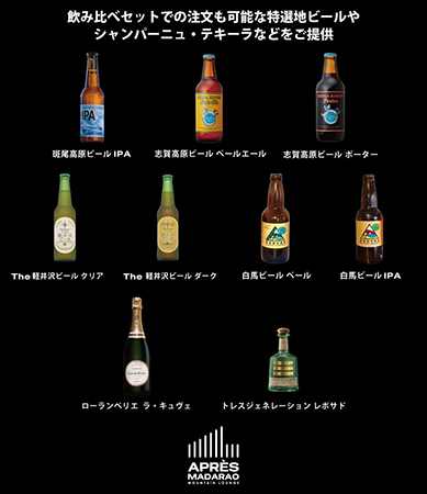 コンセプトは、「滑る時間だけでなく、過ごす時間そのものを楽しんでいただくこと」。国内外で活躍するジャンルレスで、バラエティに富んだDJによるミュージックセッションをはじめ、地元ブルワリーを中心としたクラフトビールバー、シャンパーニュやテキーラなどのドリンクを提供予定だという。