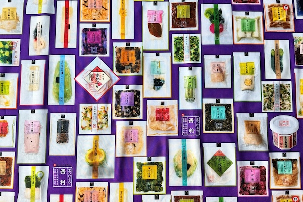 今回発表される商品は、京つけもの西利が取り扱う「お漬物」を大胆にデザインした生地。