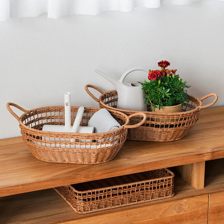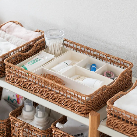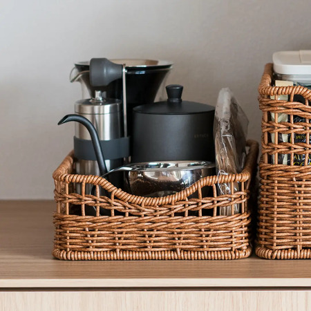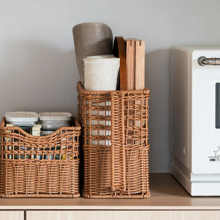 水洗いできるから気持ちよく使えて、置くだけで映えるちょうど良い収納「洗えるPPラタン」で、家の中を整えてみては。