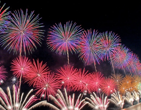 映画音楽など、迫力あるスケールのサウンドに30分の1秒単位でシンクロさせて打ち上げる芸術的な花火を堪能できる。