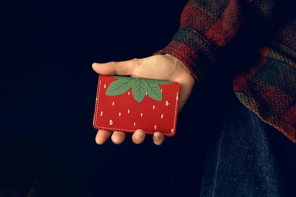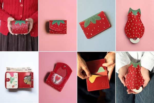 これまでも、いちごをモチーフにしたミニ財布や猫型キーケースを制作してきた。