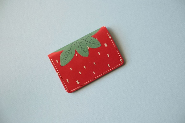 今回のコラボアイテムは名刺ケースで、栃木県産のいちごである「とちあいか」をモチーフにデザインされている。