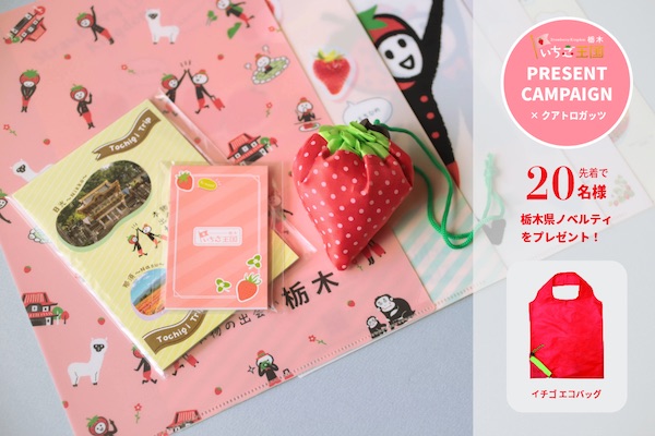 クアトロガッツ公式WEBショップにて、いちご王国・栃木とクアトロガッツのコラボアイテムのいずれかを購入した先着20名に、栃木県ノベルティをプレゼントする。なくなり次第終了となるため、早めにチェックしてみよう。
