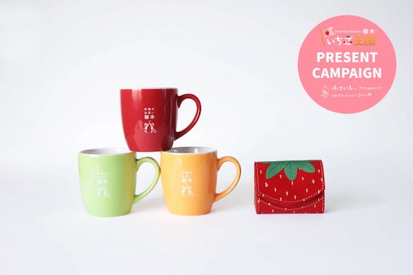 「いちご王国・栃木」コラボ小さいふ。の発売を記念して、栃木の名産いちご「とちあいか」と「ミルキーベリー」の食べ比べセットが抽選で7名当たるキャンペーンを実施。