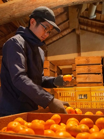 蔵出しみかんとは、年末に収穫したみかんを畑の中にある木造の蔵の中で1ヶ月以上熟成させ、年明けに出荷するみかんのこと。