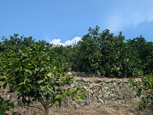石積階段園とは石垣によって作られた段々畑のことだ。美味しいみかんは、水はけのよい斜面で出来上がるとのこと。みかんは生育過程で水を吸い過ぎると水っぽい味になるため、美味しいみかんは山の斜面でできるのだという。