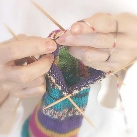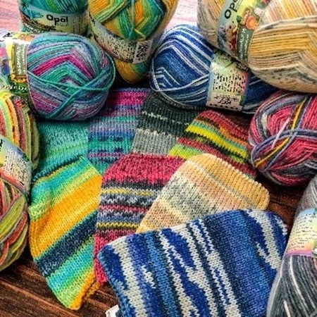 はじめて向けの手編みワークショップや、Opal毛糸を10gからちょこっと買いできる量り売りサービスも用意している。
