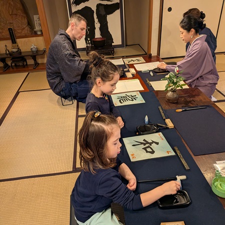 2025年12月、東京都内の由緒ある寺院にて、フランス人の家族を迎えた書道体験が行われた。大人も子どもも墨の香りと畳の感触に包まれながら、世代や国籍を越えて、日本文化の“深い時間”を共有するひと時となったそう。