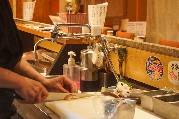 『楽てん』では、注文してすぐに料理は出てこない。それは、板前である大将が、仕込みから盛りつけまでひとりで手をかけているからだ。