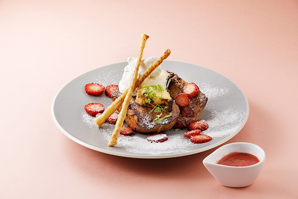 「いちごフェア」の一部メニューを紹介すると、タワーズプラザ13階のBON COCOTTEより、愛きらりとホワイトチョコ、ピスタチオのフレンチトーストが1,900円で登場する。