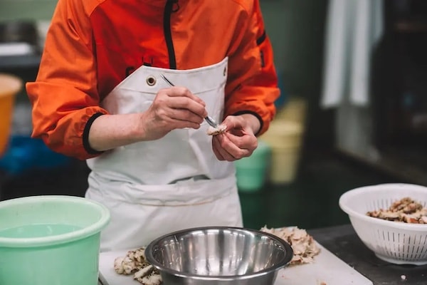 仕入れ後すぐに茹で上げ、その日のうちに職人が一つ一つ丁寧に殻から身を取り出し、濃厚なカニ味噌とともに甲羅に盛り付けた“極上の逸品”だ。