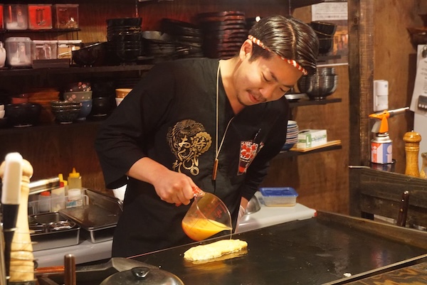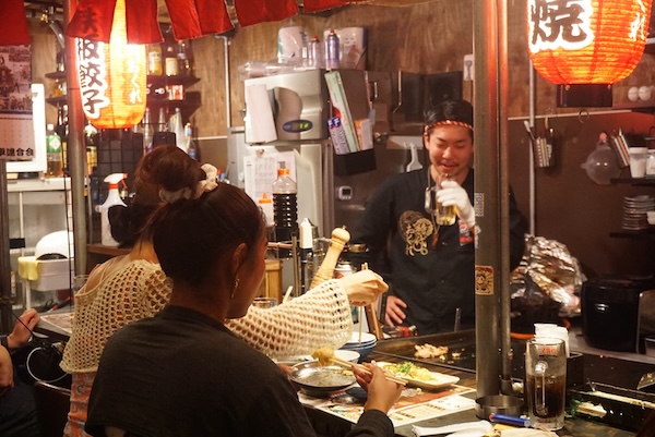 目の前で、おでん鍋の湯気がふわりと立ちのぼる。その隣で、鉄板がじゅうじゅうと音を立てる。