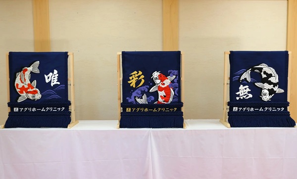鯉は全ての柄が違っていて、一つとして同じ柄はない。人の人生も同じで、1人として同じ人生はない。それぞれの人生に「彩」を感じてもらうことが、アグリグループのミッションであり、グループの象徴となっている。