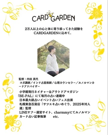 また、石川県のハーブ農園ペザンとつくったオリジナル占いカードも好評。イベント開催や執筆など、幅広く活動している。