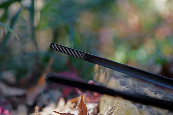 また、金属部まで黒で染め上げたステンレスボディは、焚き火やランタンの灯りを艶やかに反射。耐熱・耐食性に優れたステンレスは、アウトドアの激しい環境でも扱いやすく、使い込むほど黒の表情が深まる一本に仕上がっている。