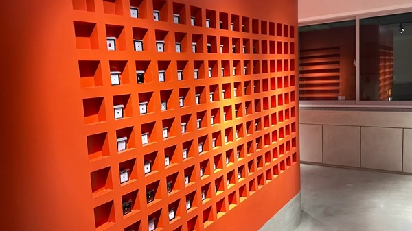「POCKET BY KISHUN」のポイント1つ目は、ブランドカラーを体現した空間演出。イメージカラーであるオレンジをはじめとした色彩が、空間の随所に取り入れられている。