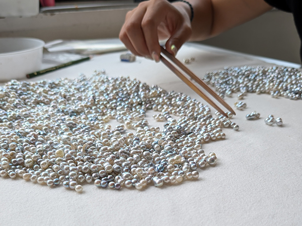 そして、一つひとつの真珠の個性を見極め、形や表情を生かした加工を店内で行うことで、これまで基準に満たないとされていた歪な粒を価値ある真珠として流通の輪に戻すことは、日本の真珠業界への貢献にもつながると考えている。